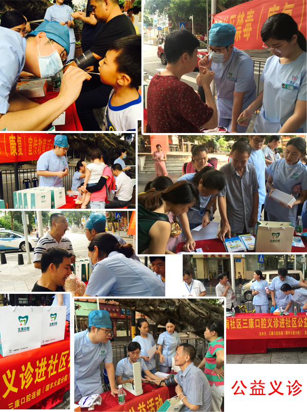 為關愛社區居民的身體健康,增強社區居民的疾病防範意識,拉近三康口腔與社區居民的距離,打通健康醫療服務最後一公里,三康口腔深入周邊社區,先後開展了愛心敬老、口腔健康普查、牙醫宣教等系列活動,免費為社區居民進行口腔檢查和健康諮詢指導並宣傳普及口腔健康知識,提高社區居民日常健康保健意識,為社區居民送去溫暖與健康。